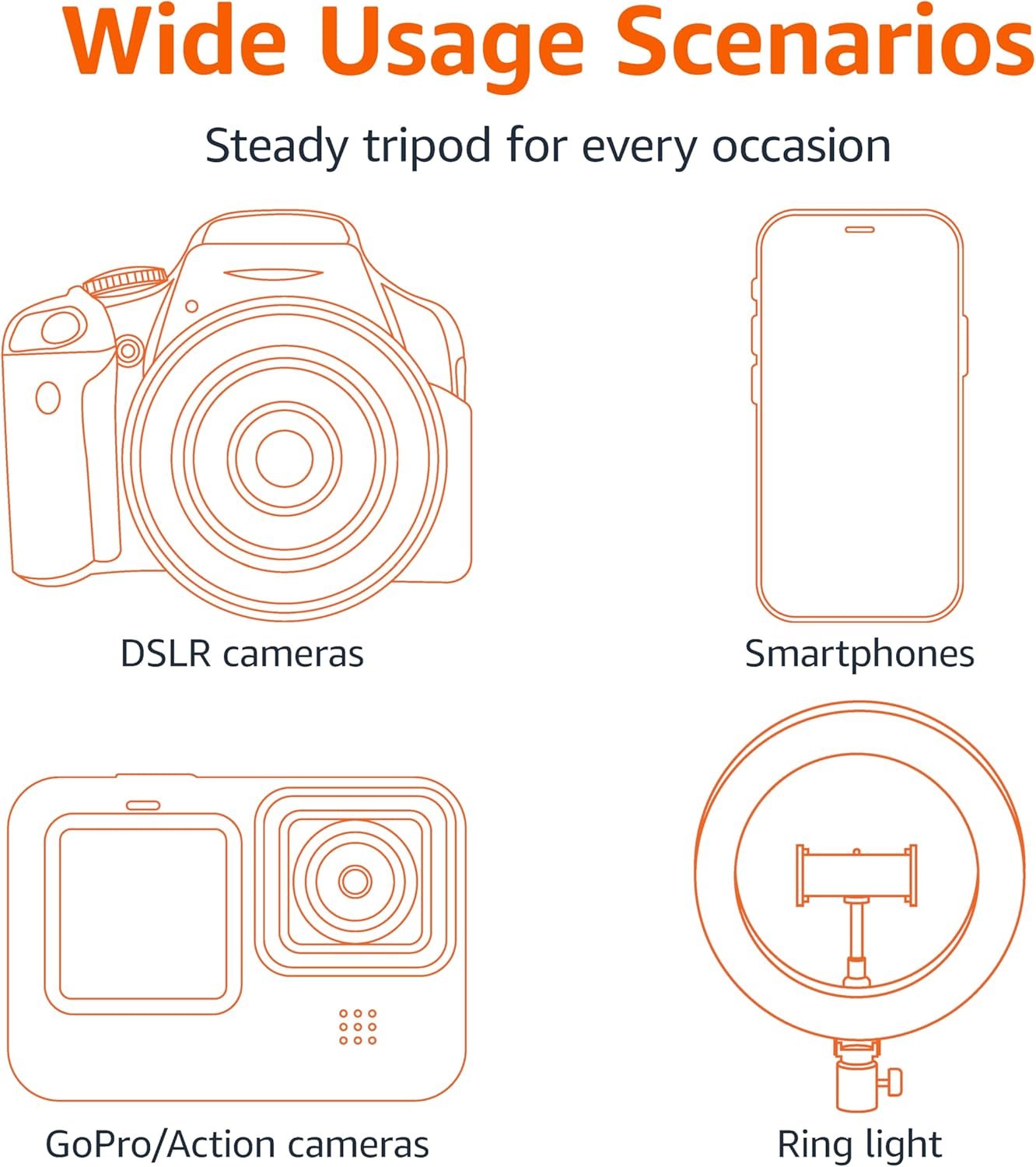 Capture every moment with the Amazon Basics 64-inch Extendable Tripod for iPhones and Smartphones—a versatile accessory that seamlessly transforms between a selfie stick and a sturdy tripod. Featuring 360° adjustment, universal compatibility with phones up to 3.7 inches wide, and a wireless remote with 30-foot range, this tripod ensures perfect shots whether you’re vlogging, streaming, or snapping group selfies. The extendable pole and easy switch between modes make it an essential tool for creators of all levels. Elevate your mobile photography game with this reliable, must-have product from the Amazon Basics Store.